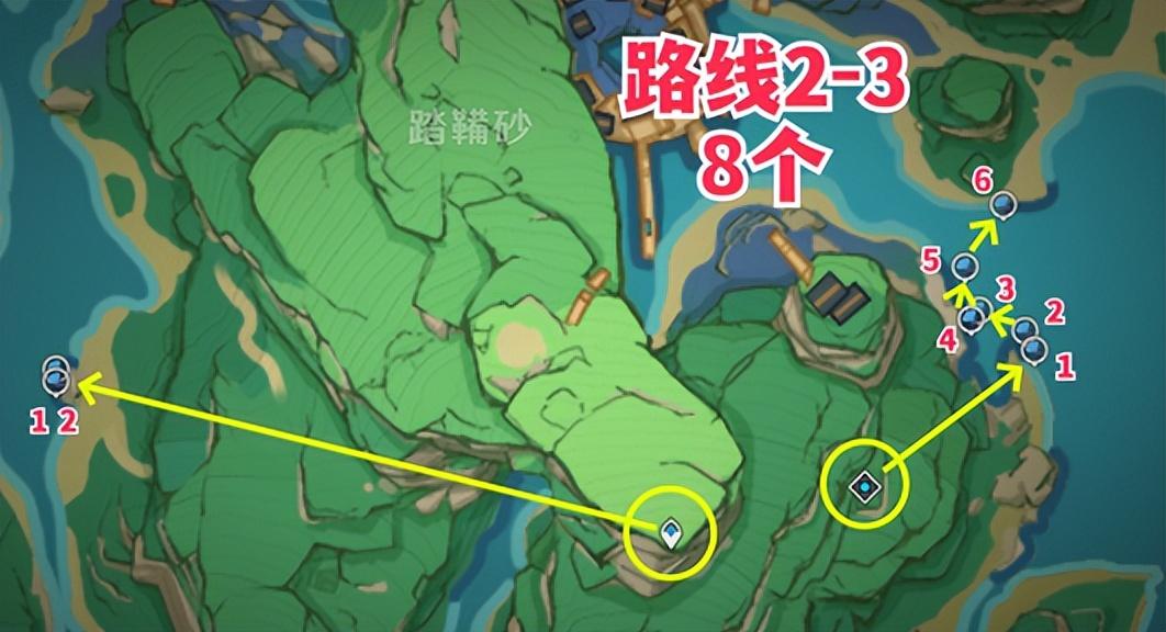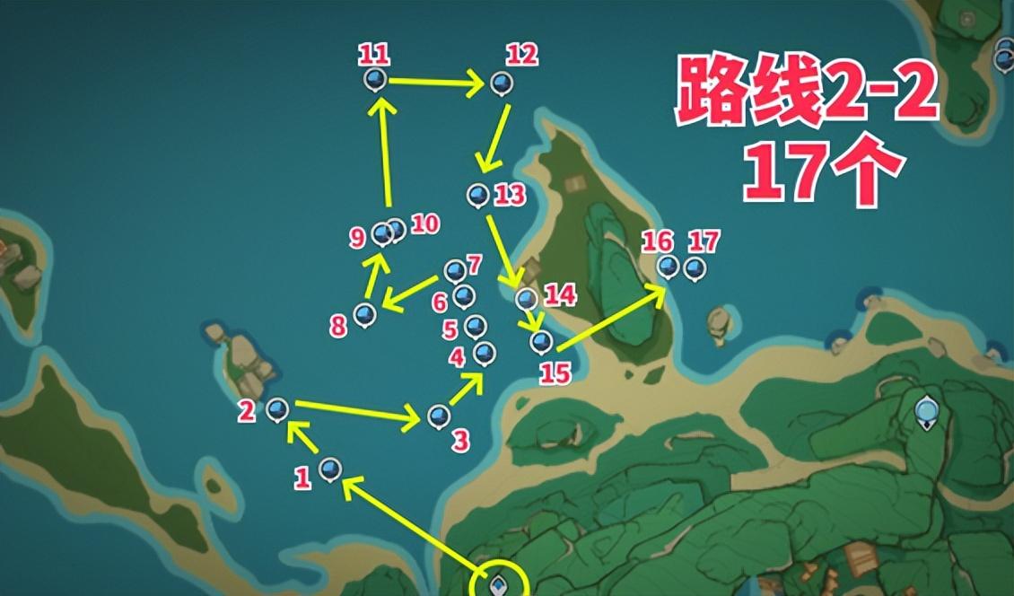 ▶路线9总计:17个(商人小佃5个、npc未来4个、尘歌壶种植8个)