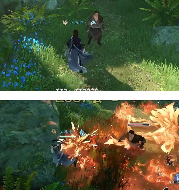 1、首先我们到三清山坐标位置(1051,846)跳崖,落入悬崖下看到个一直大笑的人,一段剧情后我们进入战斗。