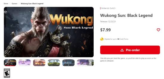 Nintendo Switch商店出现了一款名为Wukong Sun: Black Legend《悟空:黑传说》的游戏,售价7.99美元。