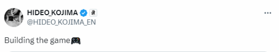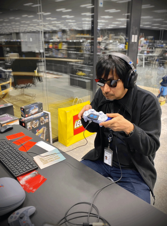小岛秀夫的推文中写道:“在制作游戏”,并配上一组照片。其中,他戴着一副黑色墨镜,神态专注地盯着显示器屏幕。他手上还握一只《宇宙机器人》特别款PS5手柄。