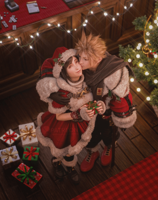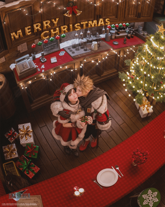 又是一年圣诞节,知名3D区推主@drayqin在今日分享了蒂法与克劳德的新3D建模同人图,身着圣诞装的蒂法与克劳德贴在一起亲亲!一起来看看吧!