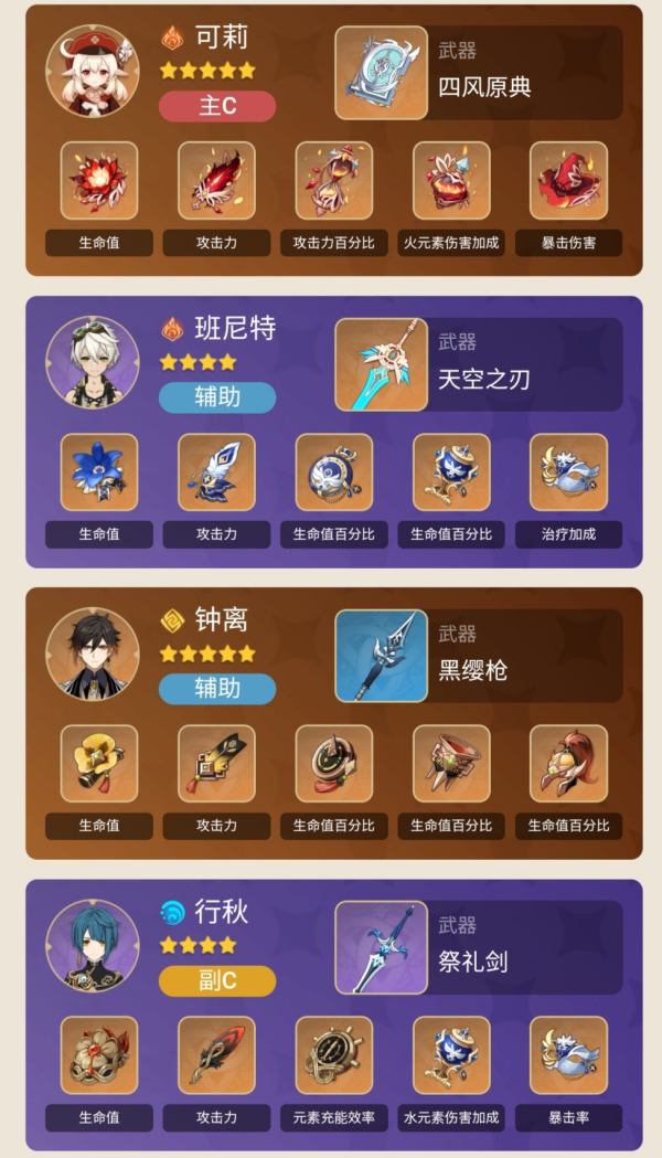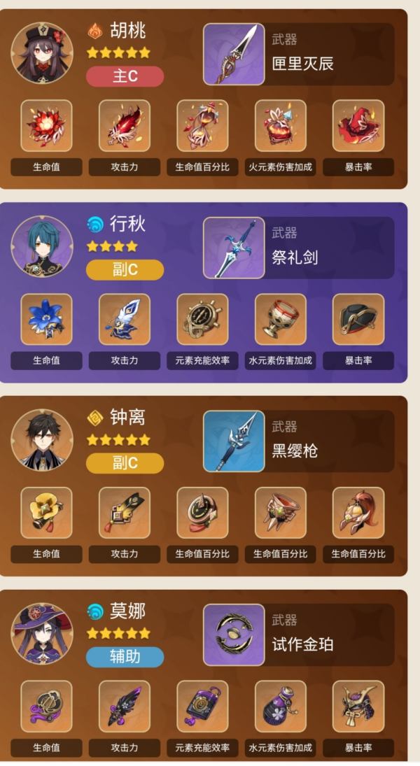 注:双岩体系且有岩共鸣,钟离可以从辅助转为副C提高收益。