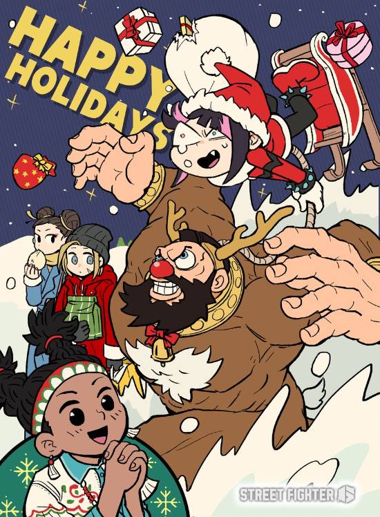 在贺图中,我们可以看到多位《街头霸王6》的人气角色以全新的形象亮相:曾经凶猛无比的桑吉尔夫化身为“驯鹿”,带着红鼻子和鹿角尽显反差萌。
