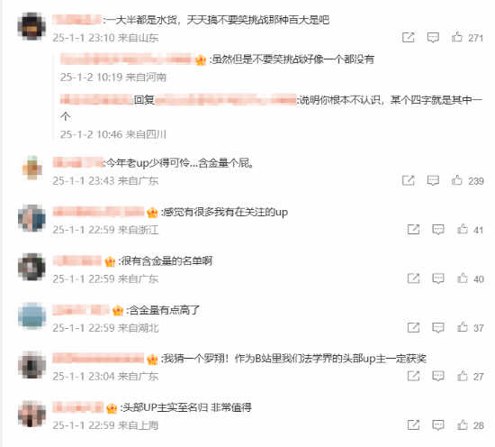 不少网友对包括今年在内的近年百大UP含金量产生质疑:老UP都没了,现在亮相的都是不认识的,呼吁B站今早公开百大的详细评选标准以及数据量化。