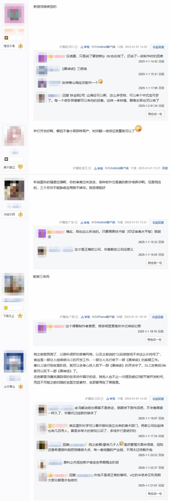 一位玩家询问帖主有关于新游戏的类型,帖主则表示无透露。“只是说了要做新IP,DLC也在做了,还说了一些制作时的困难。”还有玩家对《三体》感兴趣,帖主则称得看制作者意愿。“杨奇明显更喜欢中式神话幻想。”