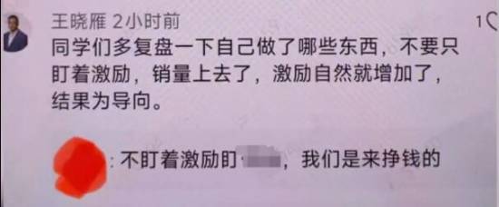 昨日有网友爆料了一张小米零售通(公司内部管理软件)上的社区截图,疑似小米副总裁王晓雁回应小米员工:“同学们多复盘一下自己做了哪些东西,不要只盯着激励,销量上去了,激励自然就增加了,结果为导向”。