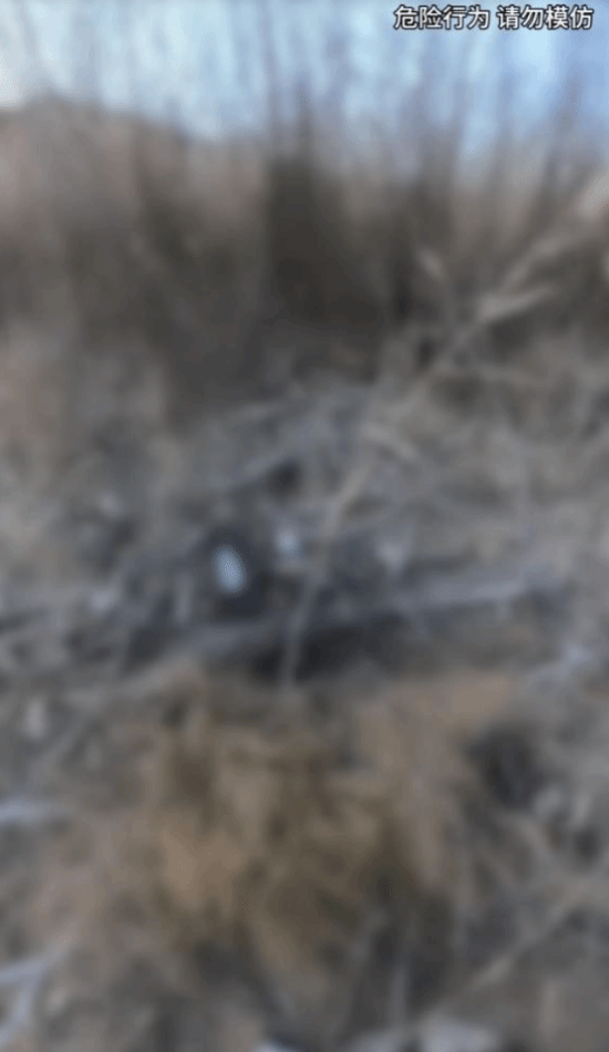 博主离开该建筑物后,沿着小路下至水库岸边,想扔石头测试一下冰面的厚度,在寻找大块石头过程中,发现疑似人体骨骼,拍照取证后,决定下山报警。
