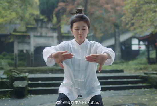 福原爱在青城山化身功夫大师?穿着高跟鞋压马步