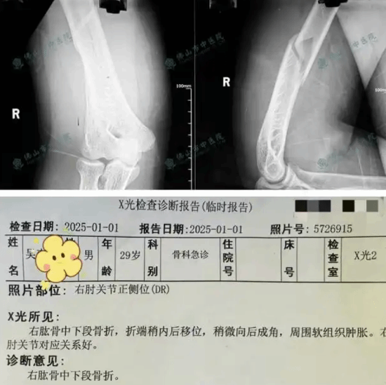 1月9日,佛山市中医院骨科急诊室接诊了两名特殊患者,均因尝试一种名为“扳手腕”的游乐设施而不慎导致肱骨下段骨折。