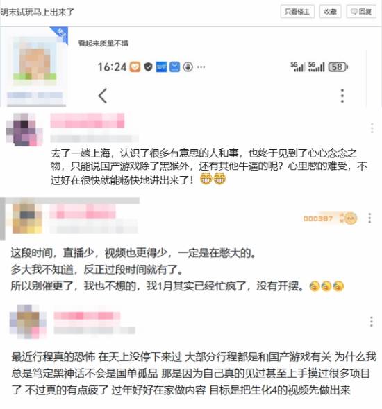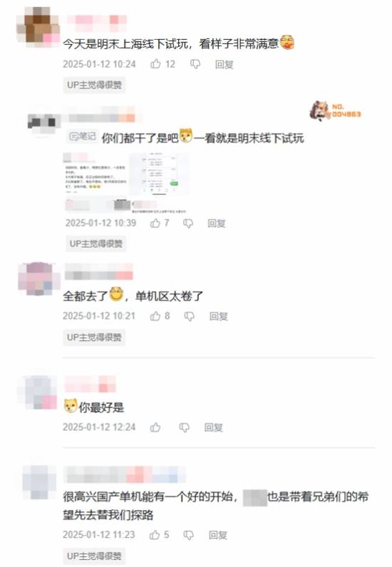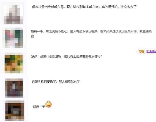 据贴吧吧友发出的信息报道,目前疑似有多位B站UP主参与了《明末:渊虚之羽》在线下举行的闭门试玩活动,有UP主表示:“国产游戏除了《黑神话:悟空》外,还有其他牛逼的呢,心里憋的难受,不过好在很快就能畅快地讲出来了!”对此,很多玩家表示期待,有玩家直言如果《明末:渊虚之羽》的试玩质量不错,自己就会直接预购。需要注意的是,一切消息需以官方为准,还望各位玩家理性看待。