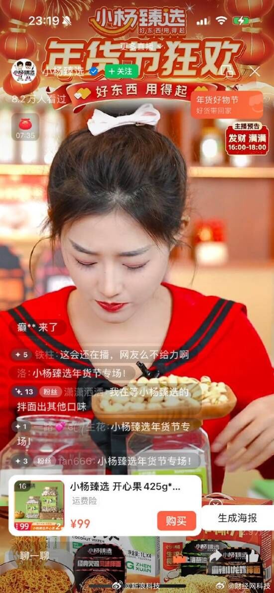 直播预告显示,早上8点,小杨甄选将进行年货节专场直播。有网友看后表示,“小杨臻选”在视频号的直播风格大反转,没有了之前在抖音的激情直播模式,小主播的直播风格十分稳健,不像此前小杨哥的直播画风。