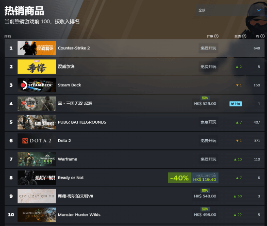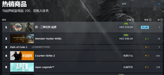 《三国无双》系列新作《真三国无双:起源》已于今日开启抢先体验(1月17日正式发售),据Steam热销榜单,该作已登上全球付费游戏畅销第一名(排除硬件和免费游戏),热度极高。