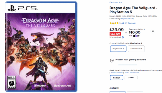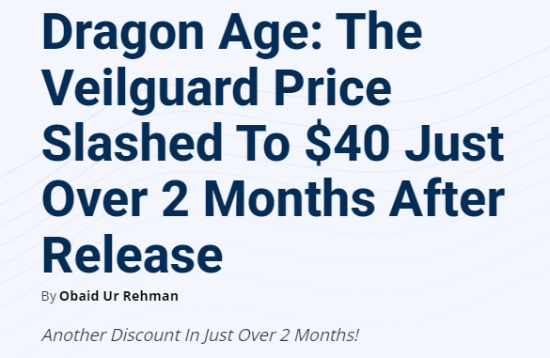 销量惨淡!《龙腾世纪4》发售仅2个多月降价30美元