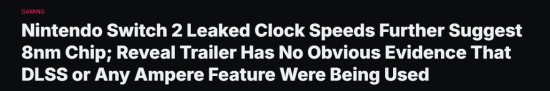 数毛社重申Switch2是8nm工艺 新片未展示DLSS特性