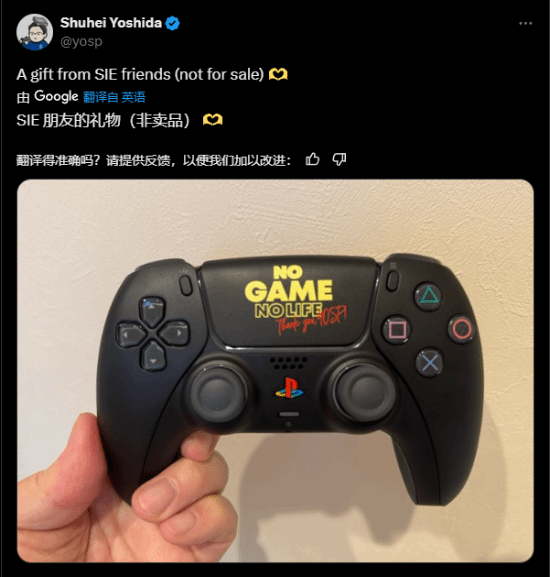 专属PS5手柄,上面印着“无游戏不生活,谢谢你吉田修平”的字样: