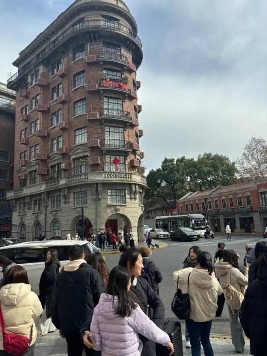 在上海另一著名景点武康大楼前,即使在工作日依旧人流如织。不仅有大量的游客,还有许多摄影师在现场揽客。