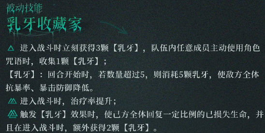 2、被动触发时全体回复一定比例生命,额外获取两个乳牙。
