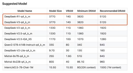 如图所示,KTransformers 团队于 2 月 10 日成功在 24 GB 显存 + 382 GB 内存的 PC 上实现本地运行 DeepSeek-R1、V3 的 671B 满血版,速度提高 3~28 倍。