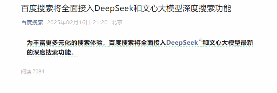 又一家!百度搜索官宣:将全面接入DeepSeek