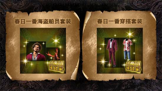 预约特典包含可将系列作品人气角色“春日一番”“南希”作为船员加入吾朗海盗团的下载内容,以及可将主角真岛的服装更换为春日穿搭的“春日一番船员&穿搭包”。