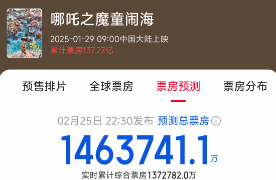 《哪吒2》预测票房下调至146亿:即将超越《蜘蛛侠》