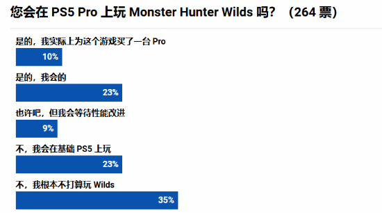 PushSquare还在站内发布投票,虽然只有264人参与,但有10%的玩家为了玩《怪猎荒野》特意买了台PS5 Pro。