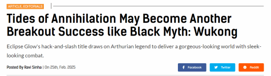 外媒看好《湮灭之潮》:能成为下一个"黑神话"式爆款