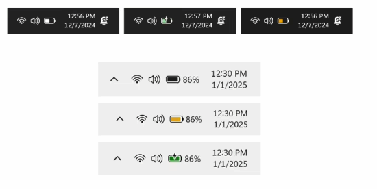 IT之家注意到,根据微软官方博客此前的消息,此次更新的电池状态图标在设计上进行了多项改进,以解决当前版本存在的问题。首先,新的电池状态图标尺寸将明显增大,从而提升可读性。此外,微软还引入了多种颜色,以便用户能够快速了解电池状态:绿色表示电池正在充电,黄色表示处于节能模式,而红色则意味着设备电量即将耗尽。