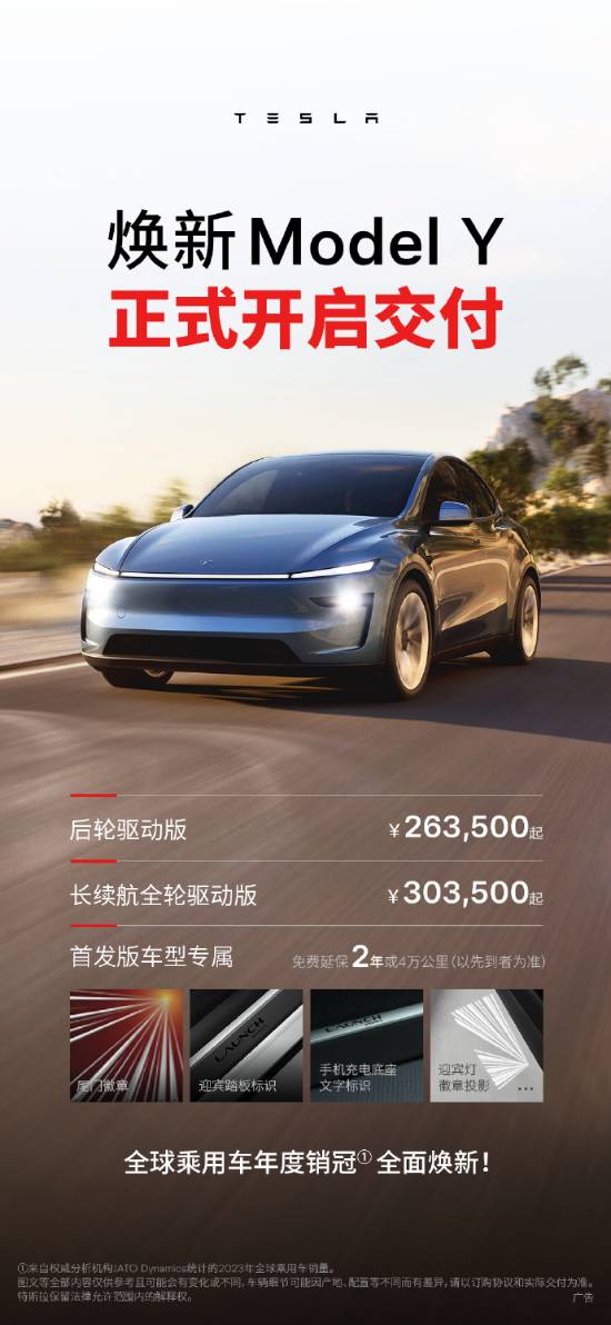26.35万元起,特斯拉焕新Model Y正式开启交付!