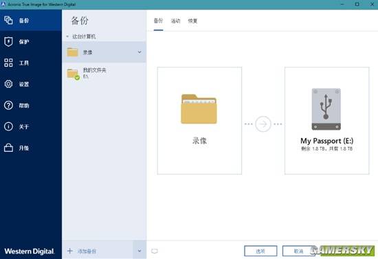 刚刚上手时,我便发现了这款产品随附的备份软件Acronis® True Image™ for Western Digital。这款软件用起来就如同产品本身一样简洁。它的界面并不复杂,主要功能都已经在主界面一一列出。而备份功能更是堪称“一键解决”,只需要设置好备份的路径与周期,它就能根据设定自动执行备份工作,为我省去了不少麻烦。