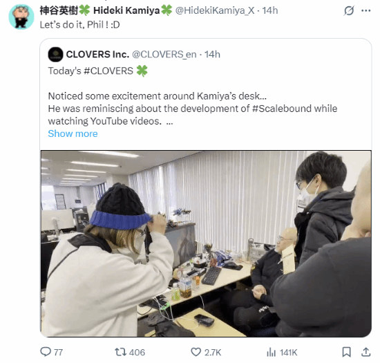 Clovers工作室近期分享了一段视频:神谷英树和几位开发人员共同观看《龙鳞化身》预告片,回忆该作的开发过程。虽然该作未能成功问世,但神谷仍然为它感到自豪,并希望有天能够重做。