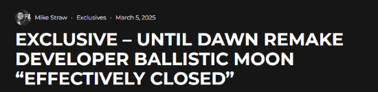 据Insider Gaming报道,多方消息源透露,《直到黎明:复刻版》开发商Ballistic Moon已基本上被关闭。