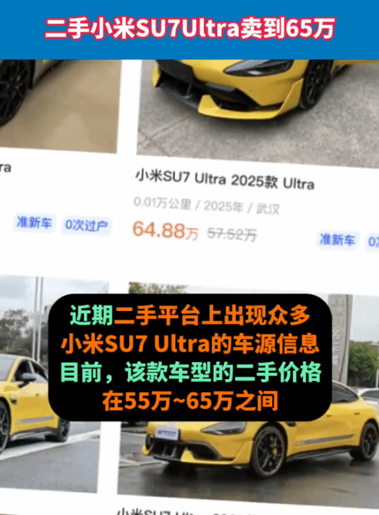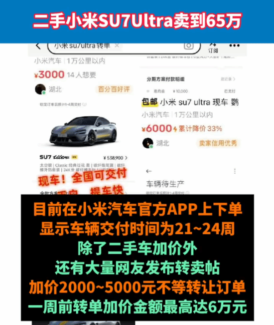 二手平台现众多小米SU7 Ultra车源:加价卖到65万!