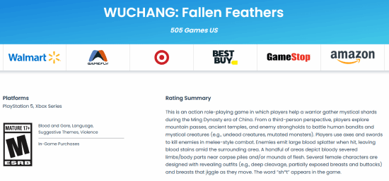 近日,《明末:渊虚之羽》通过ESRB评级,被评为“M”成人级17+。