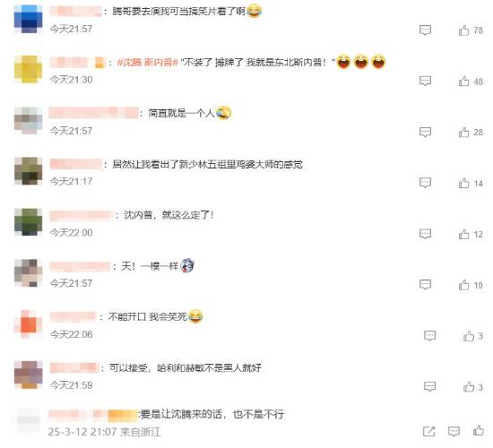 截至发稿前,“沈腾 斯内普”词条登上了微博热搜榜,引来众多网友围观。很多网友在评论区表示:“简直就是一个人。”“天!一模一样!”“沈内普,就这么定了!”有网友称如果要是让沈腾来演斯内普教授的话,也不是不行。