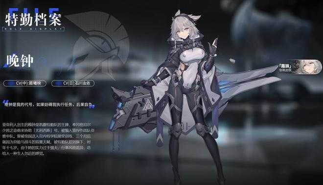 狙击型输出角色,在游戏前期因为有许多具有怪海特性的关卡,恰好晚钟的主动技能具有极强的群攻技能,所以晚钟值得我们培养在远处就可毁灭性地攻击对手。