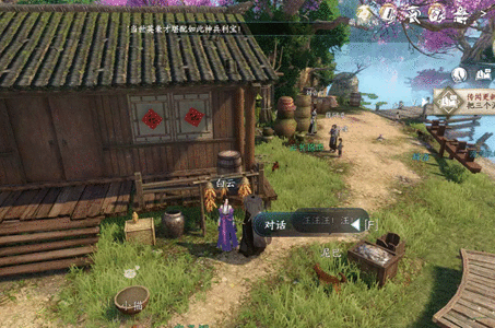 1、首先要触发任务,玩家要在桃溪村找到npc【白云】和他对话选择【大豆和小米】的选项。