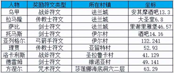 目前已知的可以赠送符文的NPC有: