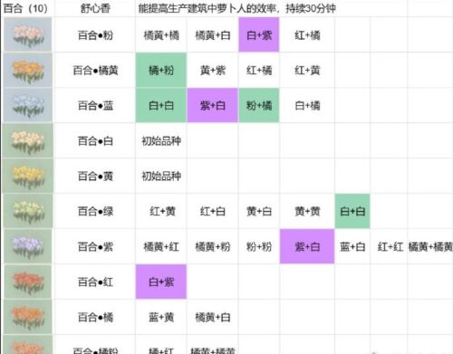 百合(蓝色背景的花是稀有花,合成几率比较小):