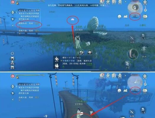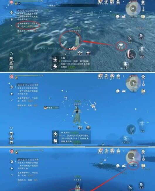 3.第三步天玄木获得是镜湖(783,307)先进入水下幻境,再打开气泡中的宝箱(752,291)。