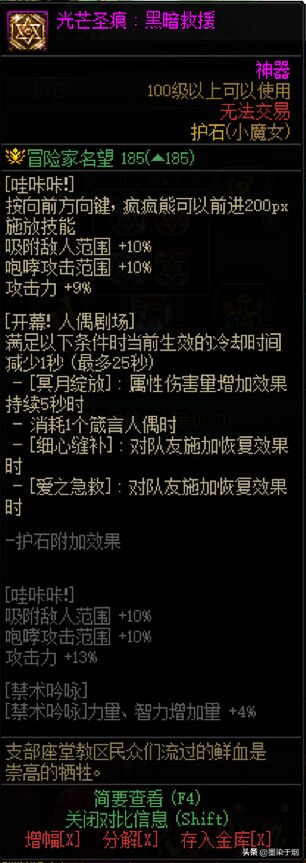 个人理解:佩戴此护石配合年宠手搓释放圣光天启可做到在巴卡尔每一个破防阶段必有一觉或三觉。