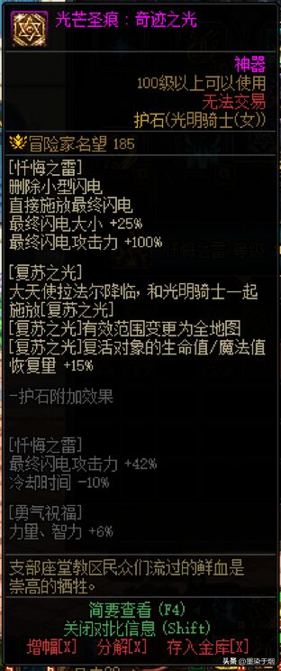 [奇迹之光]效果:全屏复活,复活血量提升。个人建议【优选】。