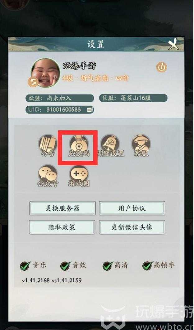 2、进入个人设置页面以后,点击下图红框中的【兑换码】图标。