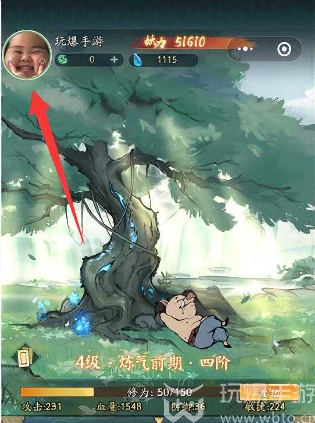 1、登录游戏页面以后,在挂机页面的左上角点击个人头像。