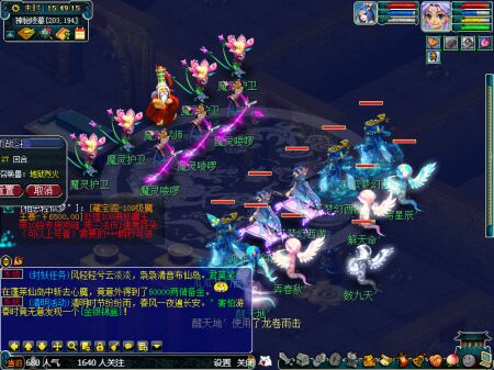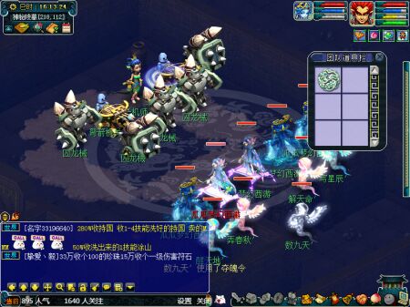 的BOSS,BOSS会破血、粉碎、横扫、后发,伤害很高。旁边的两个幽莹娃娃和炎魔神是两个WZ,伤害比较高。旁边的小怪只会毒和低伤害的飞镖,基本无视