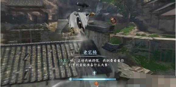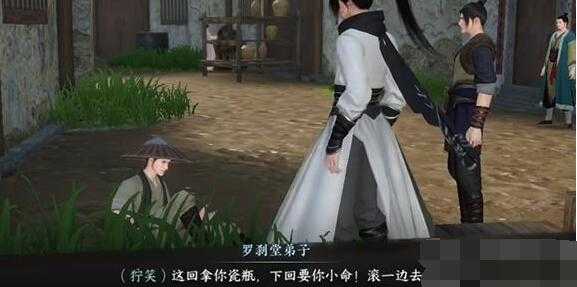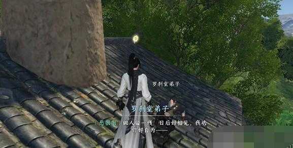 3、使用轻功就能够很轻松的抓住他,之后他会威胁玩家。