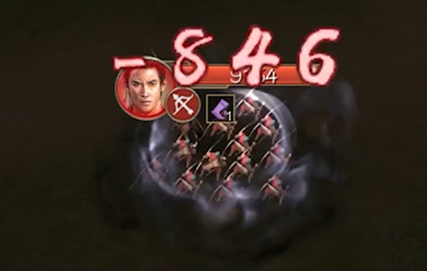 释放后使范围内敌军群体受到谋略伤害,并提升敌军受到的兵刃伤害。