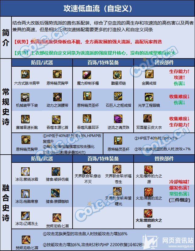 【配装特点】:结合两大改版后强势流派的直伤系配装,综合了空血流的高生存和攻速流的高伤害以及两者兼具的高速,但是需要极高的投入和自定义词条