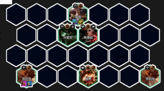 3-2升6人口,这时候大D卡找到全员2星,阵容用瑟提+沃里克+斯维因+塔莫+2塔莉娅。