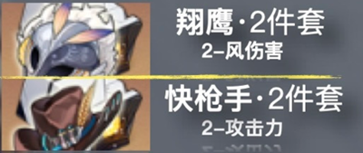(2)翔鹰两件套+快枪手两件套+仙舟两件套(增加风伤害和攻击力,提高生命值和全队攻击力)
